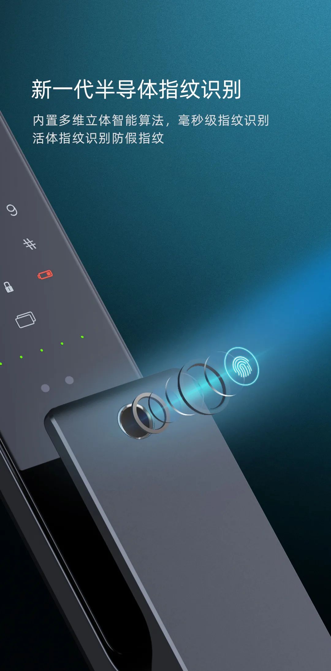 V3f人臉安全云鎖把內置多維立體智能算法的新一代半導體指紋識別器設計在拉手上。