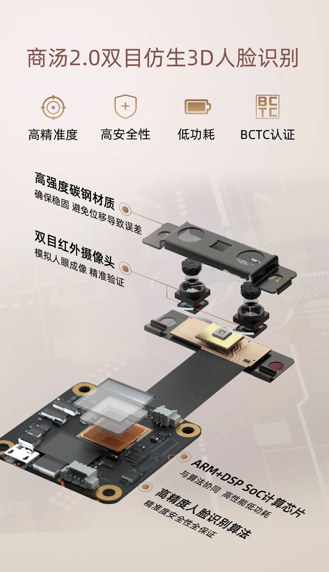 帶人臉識別的匯泰龍智能鎖均采用雙目/3D成像+雙核架構+銀聯認證算法的組合設計,讓家門只為家人而開。匯泰龍智能鎖采用雙紅外高清鏡頭模擬人雙目/3D視覺的人臉識別技術,從立體視覺的基礎上感知、采集精準人臉,加上“紅外成像+特征點”雙重驗證;搭載與算法協同的雙核架構的系統芯片,人臉算法通過BCTC國家銀聯認證,金融支付級安全標準,高精度、迅速校對人像,有效防范高清照片、紅外照片、屏幕翻圖像、人皮面具等攻擊。