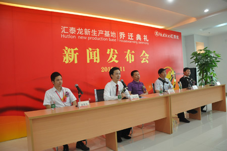 2010年6月11日匯泰龍新生產基地喬遷典禮隆重舉行。里水鎮人民政府副鎮長葉劍輝、中國建筑裝飾協會副會長王冶、匯泰龍五金衛浴制造有限公司總經理陳鴻填、匯泰龍客戶代表浙江匯豐建材有限公司董事長賀葉江先生、匯泰龍五金衛浴制造有限公司營銷副總徐振忠先生等出席了匯泰龍新生產基地喬遷的新聞發布會。