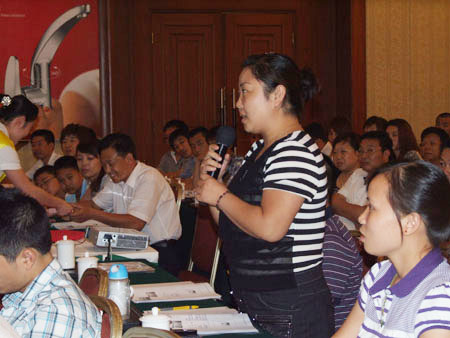 李佳麗老師把這次的培訓分為兩大內容:商務禮儀與職業形象塑造。在第一部分課程中,她首先提出“這是一個服務制勝的年代!”的觀點,并引用了國外多家知名企業的實例和相關權威調查數據來證明“服務”的內涵和意義。在課程講授過程中,李老師設計了了許多的游戲,讓學員主動參與其中,在愉快的學習氛圍中現場學習實用的商務禮儀知識。李老師從儀容儀表禮儀、語言溝通禮儀、商務接待禮儀等多個方面來講解在當今商務交往活動中應當注意的商務禮儀和著裝規范,在現場中舉出了許多生動的例子來講解正確的商務禮儀中的一些細節標準。培訓課程中的另外一個特色是,現場邀請了匯泰龍公司的多名工作人員現場表演示范,并添加了許多網絡視頻和電影剪輯使整個課程直觀生動。在培訓最后環節,李老師播放了匯泰龍門店銷售過程視頻,啟發在場的學員利用今天學習的知識對視頻中的各個細節加以評判和分析,提出改善的意見,把學到的理論知識拿到實際工作中來指導我們的工作,參訓學員各抒已見,討論激烈,培訓在良好的學習氛圍中進行。