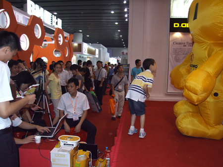 展館外,創(chuàng)意無限的展臺(tái)形象,逗留在匯泰龍展臺(tái)前的觀眾爭先合影留念,一分鐘快照項(xiàng)目讓觀眾留下了美好的回憶。可愛逗趣的匯泰龍吉祥物——星Q互動(dòng),吸引了眾多參觀者的眼球,匯聚了全場最高的人氣,讓匯泰龍展臺(tái)一如往年成為展會(huì)的人氣中心。