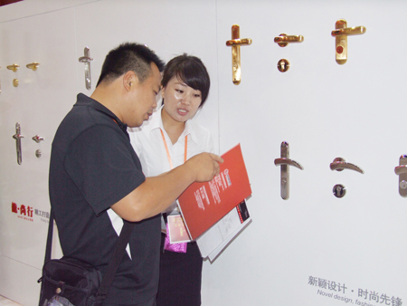 在每一個(gè)系列的產(chǎn)品前,公司都配備了一名專業(yè)的工作人員。這些匯泰龍工作人員具備五金衛(wèi)浴行業(yè)深厚專業(yè)知識(shí),在現(xiàn)場對產(chǎn)品的設(shè)計(jì)、材質(zhì)、性能、優(yōu)點(diǎn)等都作了詳細(xì)的講解。在匯泰龍新型電子門鎖展區(qū),工作人員現(xiàn)場演示了門鎖的操作方法,吸引了眾多客商的目光。