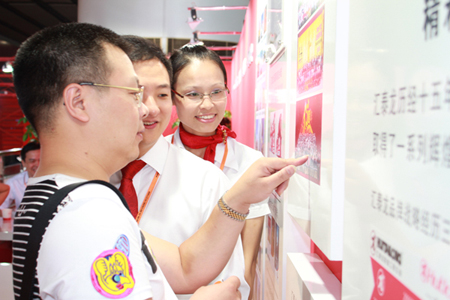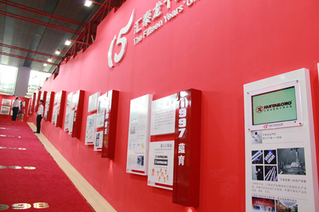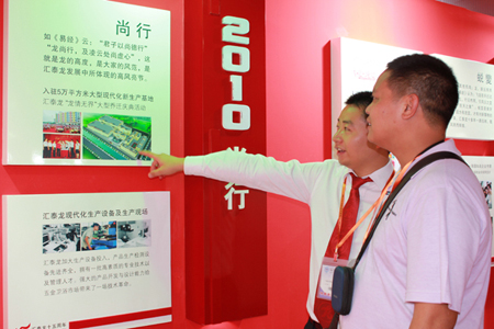 展館內,匯泰龍十五周年成長之路的歷史長廊以特別的表現手法,展現匯泰龍十五年來隨時間成長積累和沉淀的品牌文化底蘊;豐富的產品、精美的產品造型、熱情專業的服務吸引了眾多國內外客商紛紛參觀、洽談,同時也成為了各大新聞媒體關注的焦點。