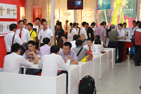 2011年7月8日—11日,第十三屆中國(廣州)國際建筑裝飾博覽會在廣州國際會議展覽中心隆重開幕。廣州建博會被譽為“亞洲建材第一展”,是全球最具影響力的建筑裝飾行業盛會之一。從1999年以來,匯泰龍都積極參與,并以精彩紛呈的表演,演繹了獨具特色深厚的品牌文化底蘊。本屆展會,匯泰龍更是走在時代的前沿,以“龍.聚升”為主題展現了“時尚、生態、健康”在現代人類宜居生活空間中的重要性,另外,匯泰龍展館中彰顯匯泰龍十五周年品牌發展歷程的歷史長廊,更讓每一位參展客商深刻感受到了匯泰龍品牌濃厚的企業文化重量。