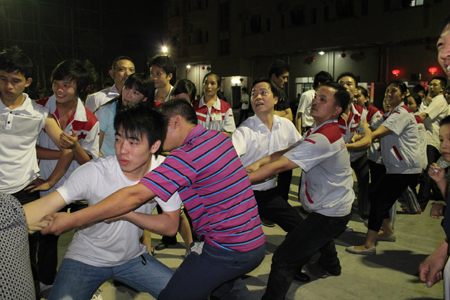 游園活動第一個項目是激情澎湃的拔河比賽,各中心代表隊共八支隊伍每一隊隊員都摩拳擦掌,拉拉隊員也站滿了廣場為隊員吶喊助威,近一個小時的激烈的角逐,最終勝出冠軍行政中心、亞軍廣州分公司、季軍制造中心2隊,拔河比賽充分展示了團隊的力量。