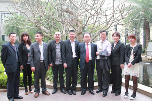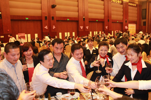 3月20日17:00,在全國經銷商陸續到達廣東佛山三水綠湖酒店后,大家共同合影留下了美好的全家福大合影。隨即,龍情相約酒會開始。酒會現場,公司董事長陳鴻填先生在激昂喜慶的音樂聲中走上主題背景臺,發表了熱情洋溢的祝酒詞。他首先表達了對經銷商遠道而來的熱烈歡迎,接著向大家總體介紹了匯泰龍2011年在行業內取得的突出成績,最后,陳董表達了全體經銷商共同攜手、相互合作、共創佳績的愿望。酒會中,陳董、徐總以及匯泰龍高層管理團隊一同輪流向每一桌遠道而來的經銷商祝酒,整場酒會氣氛溫馨,經銷商們舉杯同慶,在相互的祝愿和經驗交流中,將酒會氣氛一次次推向了高潮。