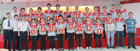 4月13日,匯泰龍佛山南海生產(chǎn)基地辦公樓五樓會議廳聲樂交響、燈火通明,匯泰龍2012年度第一季度優(yōu)秀員工(七級員工)表彰大會隆重召開。公司人事行政中心總監(jiān)任志平先生、制造中心總監(jiān)莫志金先生、制造中心各部門經(jīng)理、車間主任及優(yōu)秀員工到會,會議上任總監(jiān)首先發(fā)表了講話,他在演講中提到,一個優(yōu)秀的企業(yè)離不開每一個優(yōu)秀的團隊,優(yōu)秀的團隊的品質(zhì)必須由每一位優(yōu)秀品質(zhì)的員工才能體現(xiàn),受表彰的幾位優(yōu)秀員工在平凡的崗位上兢兢業(yè)業(yè),足以成為匯泰龍人學習的榜樣,接著他宣讀了《2012年度第一季度優(yōu)秀員工名單》,公司領(lǐng)導(dǎo)對這些經(jīng)民主投票評選出的優(yōu)秀員工進行頒發(fā)榮譽證書并進行表彰,獲獎員工董梅、易光俊代表全體優(yōu)秀員工發(fā)言,最后,所有嘉賓與優(yōu)秀員工合影留念。表彰大會氣氛熱烈,在圓滿完成會議議程之后,表彰大會隆重閉幕。