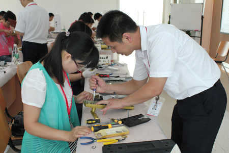 本次培訓主講為公司電子鎖事業部黎宇先生,課程內容有智能鎖市場分析;匯泰龍智能電子鎖介紹;操作使用;安裝與調試;售后服務。由于參與本次集訓的人員多為一線銷售人員及售后安裝服務人員,所以本次的培訓著重于介紹產品內部結構原理,讓學員更深入地了解電子鎖構造和工作原理。所有學員均配備一把實習專用電子鎖,現場跟隨培訓講師把一把完整的電子鎖拆裝成零星的小部件,再重裝還原。培訓采用幻燈片演示以及現場實操演練相結合,直觀地現了匯泰龍智能電子門鎖內部結構和性能特點,從大家的自由的討論中總結匯泰龍新款智能電子鎖的優勢,在實操部分,大家按老師所教的步驟自由拆裝鎖體,對鎖的操作和內部結構有了更加詳細的了解,讓大家更加深刻了解了新產品的特性。此次培訓從裝配、安裝、到調試、售后服務都從“品質造就滿意”出發,目的在于為廣大的消費者提供最優質的產品品質、最先進的營銷品質、最完善的服務品質。為了及時檢驗培訓效果,在培訓結束后,進行了嚴格的實操考試,對培訓合格的人員頒發了《匯泰龍智能電子鎖培訓合格證書》。