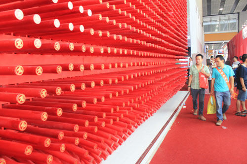 匯泰龍本次的展館主題是:“來自未來·智能館”。進入A區館品牌云集的1.1館,匯泰龍展館以奔放熱烈的紅色深深地吸引了眾多參觀者駐足留連。匯泰龍一改以往傳統的強調秩序的表達方式,主體造型模擬光的物理形態來衍生,將呈放射性的“光線”用實體形態作抽象的表達,讓人浮想聯翩。那如同光柱般的大小長短相同的圓柱,成為設計的基本元素,嚴謹有序的排列,繼而聯成一片,合并成一個完整的建筑造型,也因此而形成強大的視覺張力,整體造型模擬出光從光源向四面八方散射出去,不斷延伸,灑遍世界每個角落。詮釋現代科技,就如帶給大地蓬勃生機的光芒。