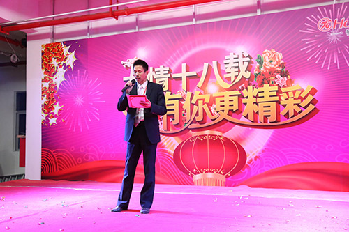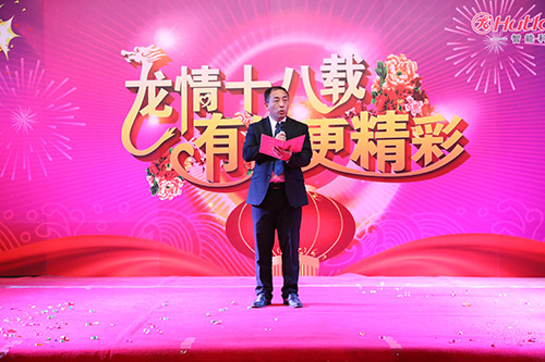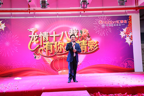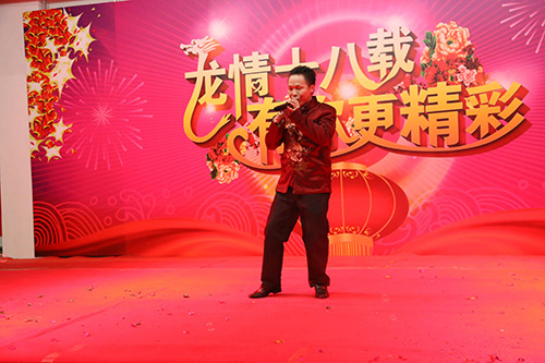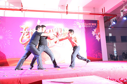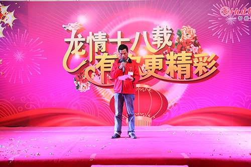在四位主持人的引導(dǎo)下,陳董上臺(tái)發(fā)表新年賀辭,他首先向大家總結(jié)了我們?cè)?014年取得的成績(jī),對(duì)一年來(lái)全體匯泰龍人的付出和努力表示感謝,同時(shí),他指出2014年受房地產(chǎn)行業(yè)的影響,整個(gè)家居建材行業(yè)都很?chē)?yán)峻,我們匯泰龍公司全體同仁齊心協(xié)心仍然取得了一定的成績(jī)。面對(duì)2015年,我們通過(guò)轉(zhuǎn)型、一系列變革等措施,一定會(huì)繼續(xù)發(fā)力,再創(chuàng)匯泰龍的輝煌。最后,他熱情洋溢地表達(dá)了對(duì)在場(chǎng)所有員工和員工家人新年的祝福,在場(chǎng)的員工深受鼓舞,報(bào)以雷鳴般的掌聲。