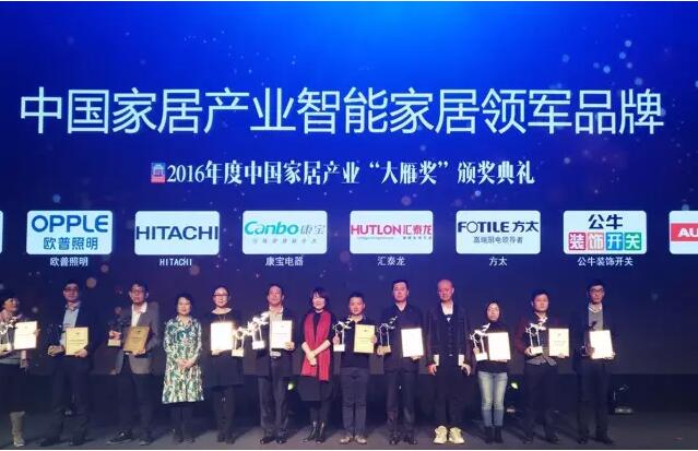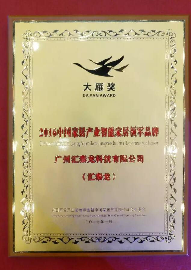 2017年1月7日,第四屆中國家居產(chǎn)業(yè)發(fā)展年會暨2016年中國家居產(chǎn)業(yè)“大雁獎”頒獎盛典于北京國家會議中心舉行。在這享有“中國家居業(yè)奧斯卡”美譽的盛典上,匯泰龍智能生活五金憑借2016年亮眼的市場表現(xiàn)和廣受好評的匯泰龍云鎖,榮獲2016年中國家居產(chǎn)業(yè)智能家居領(lǐng)軍品牌“大雁獎”。
