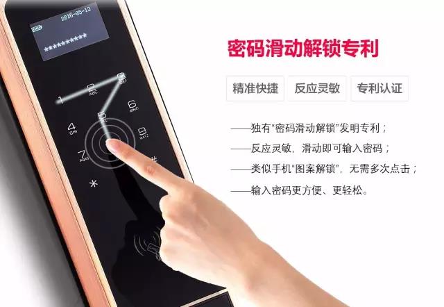 “密碼滑動(dòng)解鎖”發(fā)明專利,反應(yīng)靈敏,滑動(dòng)即可輸入密碼,輸入密碼更方便、更輕松。